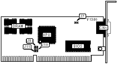 Note: The VGA 9000 comes in 256KB and 512KB versions. The size and orientation of memory banks is unidentified. |