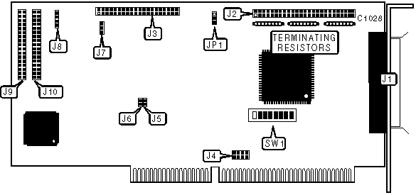 50-pin SCSI connector - internal | J2 | 34-pin cable connector - floppy drive | J9 |