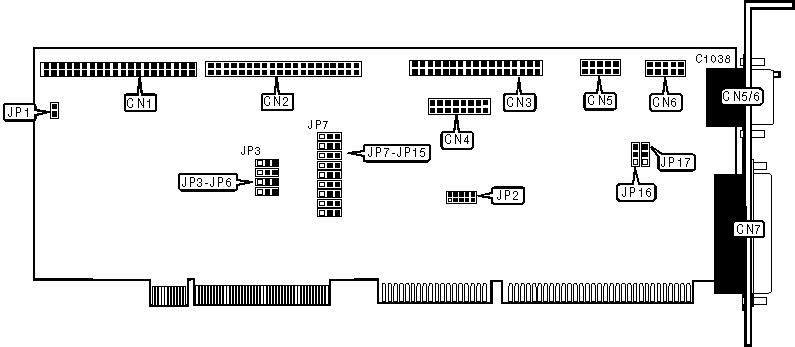 34-pin cable connector - floppy drive | CN3 | 25-pin parallel port - external | CN7 |