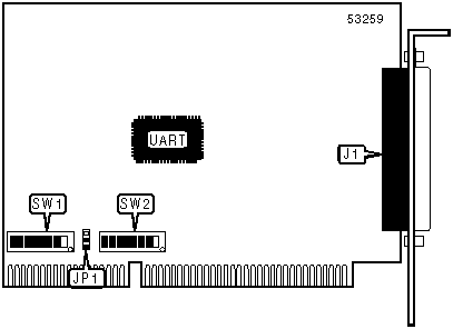 Note: A total of 512 base address settings are available. The switches are a binary representation of the decimal memory addresses. SW1/8 is the Most Significant Bit and switch SW1/1 is the Least Significant Bit. The switches have the following decimal values: SW1/8=4096, SW1/7=2048, SW1/6=1024, SW1/5=512, SW1/4=256, SW1/3=128, SW1/2=64, SW1/1=32. Turn off the switches and add the values of the switches that are off to obtain the correct memory address. (Off=1, On=0)SW1/1 must be off on the Octacable card. | |||||||||