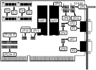 Serial port 2 interrupt shared | JP12 | Pins 3 & 5, 4 & 6 closed | |