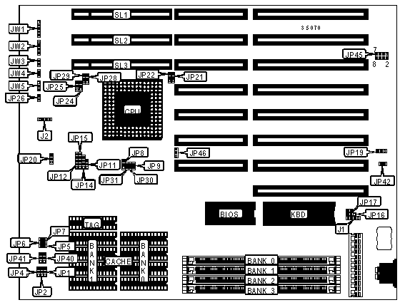 Speaker | JW2 | 32-bit VESA local bus slots | SL1 - SL3 |