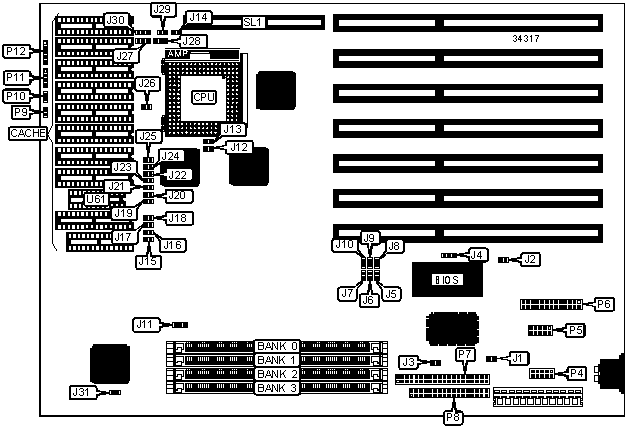 Floppy drive interface | P8 | 32-bit VESA local bus slot | SL1 |