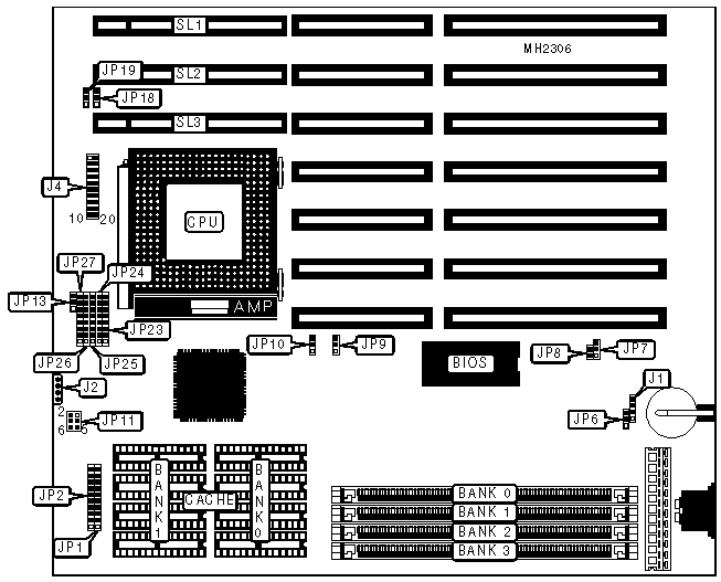 CMOS memory clear | JP6 | pins 2 & 3 closed | |