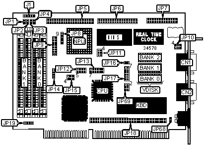 Turbo switch | JP2 | PC bus connector | JP18 |