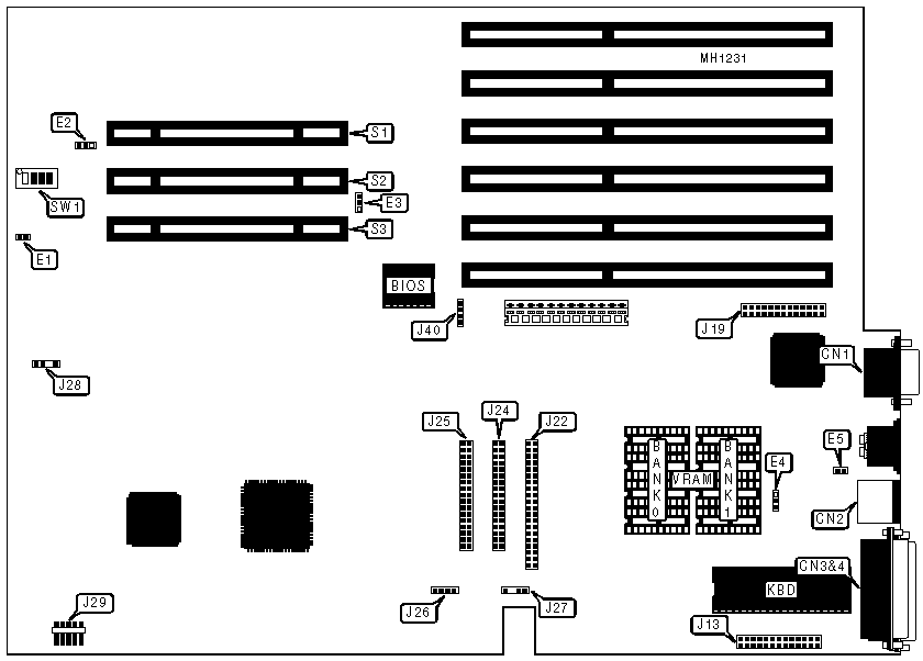 Floppy drive interface | J24 | 32-bit external Memory module slots | S2 & S3 |