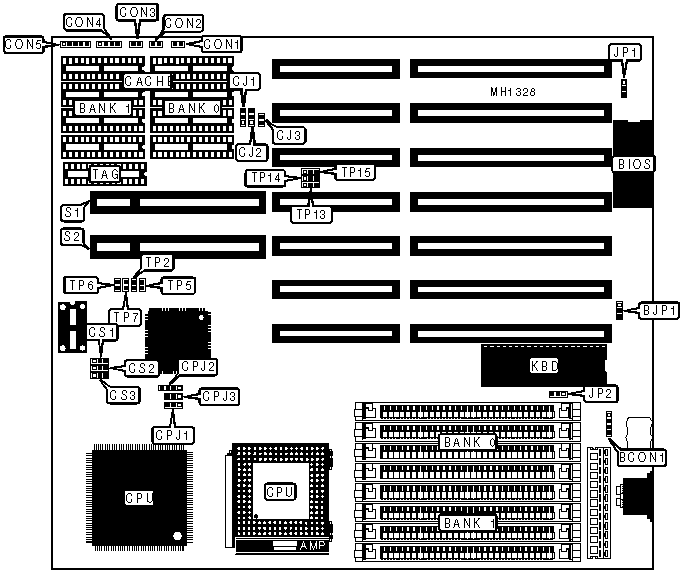 Turbo LED | CON2 | 32-bit VESA card (2) | S1 & S2 |