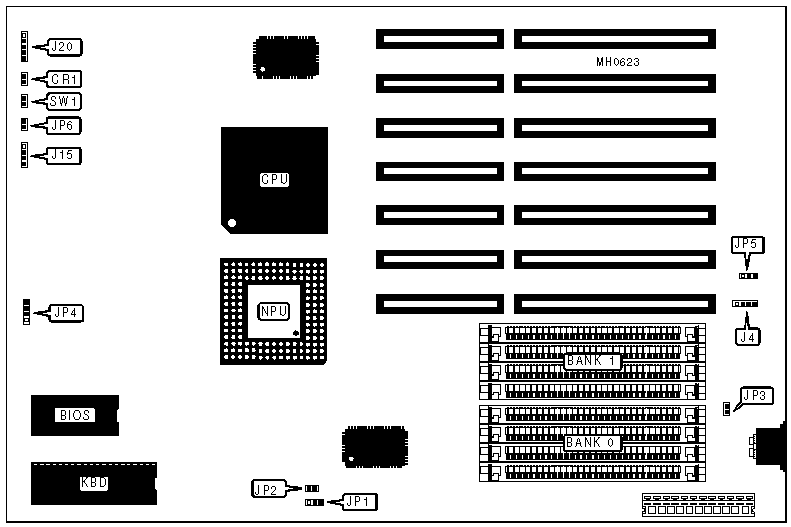 CMOS memory clear | JP5 | pins 1 & 2 closed | |