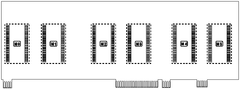 Note: The system memory card uses proprietary memory modules, some require only one module space on the memory board, while others require two. In the cases where a double size module is used, the following space is marked with "-----------------", designating that space as occupied. | ||||||