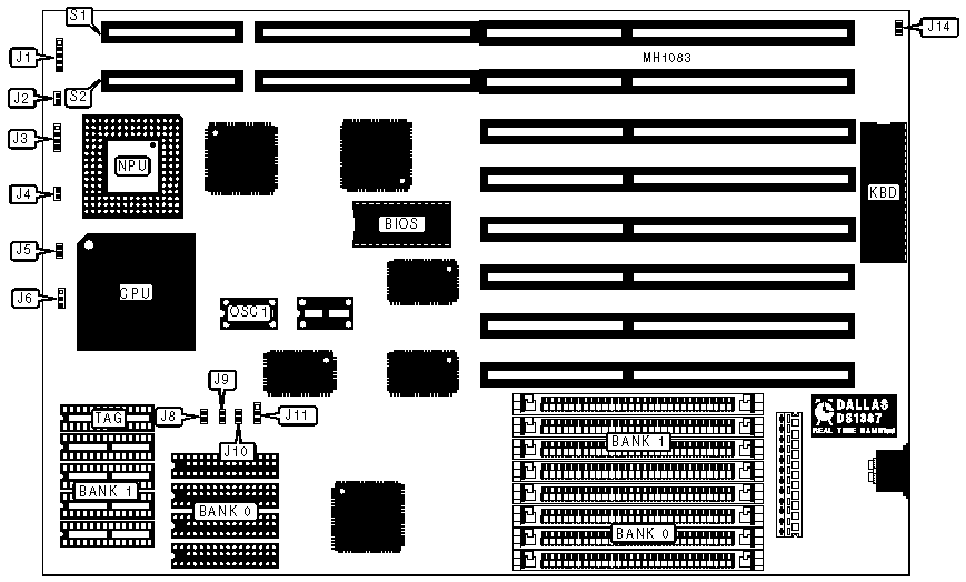 Speaker | J3 | 32-bit local bus cards (2) | S1 & S2 |