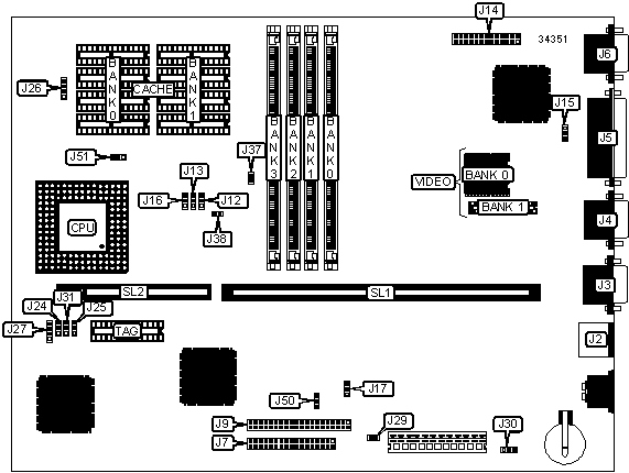 VESA feature connector | J14 | 32-bit VESA local bus slot | SL2 |