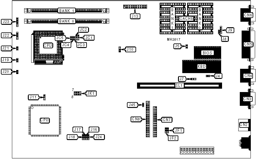 PS/2 mouse port | CN2 | VGA feature connector | J13 |