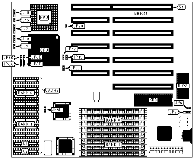 Power LED & keylock | J9 | 32-bit local bus card | S1 |