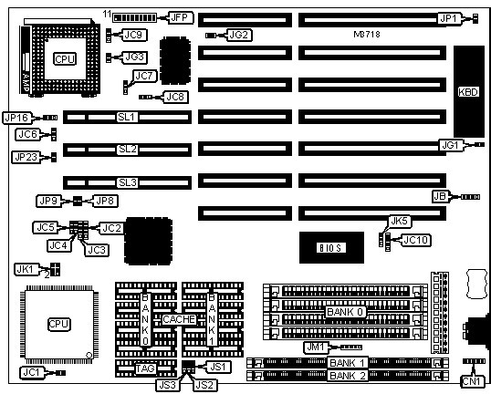Turbo LED | JFP Pins 12 & 13 | 32-bit VESA local bus slots | SL1 - SL3 |