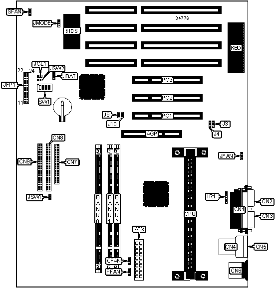 PS/2 mouse port | CN6 | Soft off power supply | JSW2 |