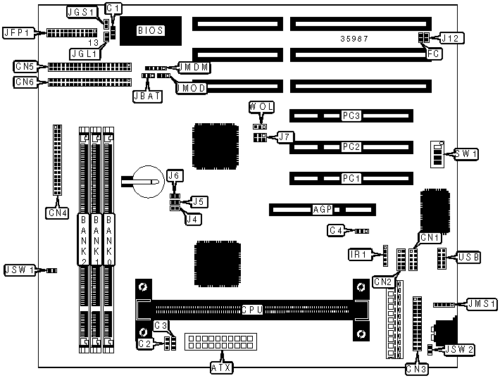 IDE interface 1 | CN5 | Soft off power supply | JSW2 |