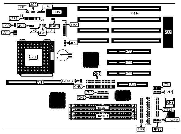 VGA feature connector | CN8 | Auxiliary keyboard connector | JPS3 |