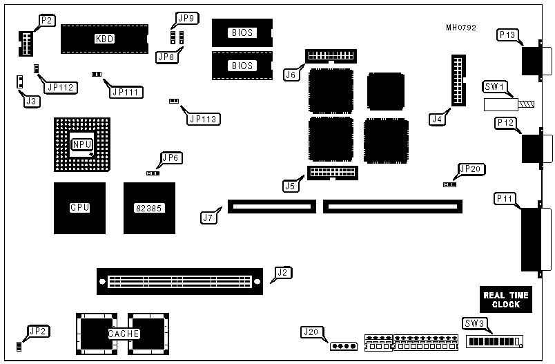 Proprietary system memory card | J2 | Keyboard/Bus mouse interface | P2 |