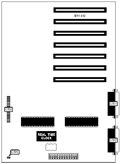 Serial port (25 pin) | CN2 | Power LED | CN5 |