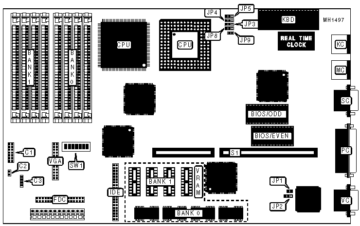 80486SX | Open | pins 1 & 2 closed | pins 2 & 3 closed | Open |