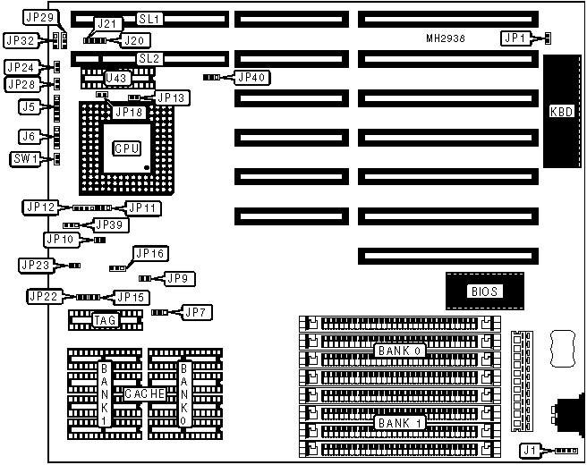 Speaker | J6 | 32-bit VESA local bus slots | SL1 & SL2 |