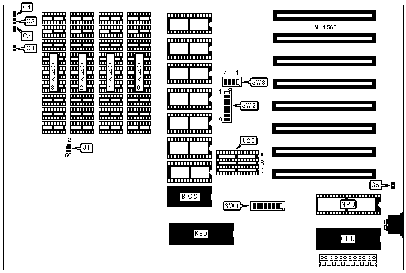 Switch | 2764 (U25A) | 27128 (U25B) | 8K ROM (U25A) | 32K ROM (U25C) |