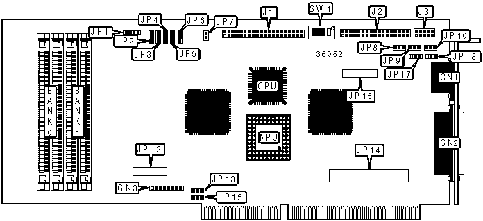 Floppy drive interface | J2 | Video board connector | JP16 |