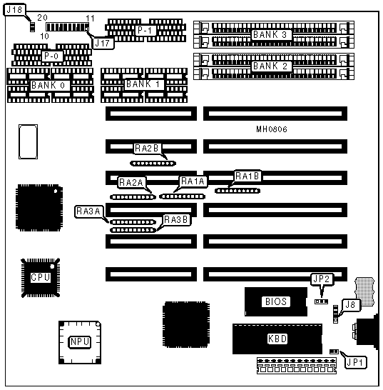 CMOS memory clear | JP2 | pins 1 & 2 closed | |