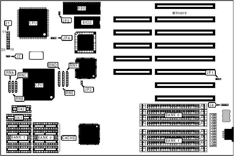 | CMOS memory clear | JP1 | pins 1 & 2 closed |