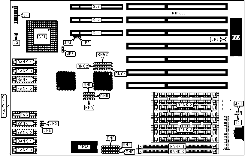 Turbo switch | J7 pins 7 & 17 | 32-bit VESA local bus slots | SL1 - SL3 |