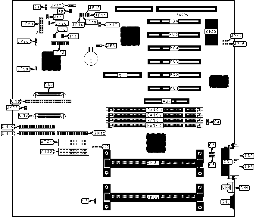 Wide Ultra SCSI interface | CN7 | 32-bit PCI slots | PC1 - PC6 |