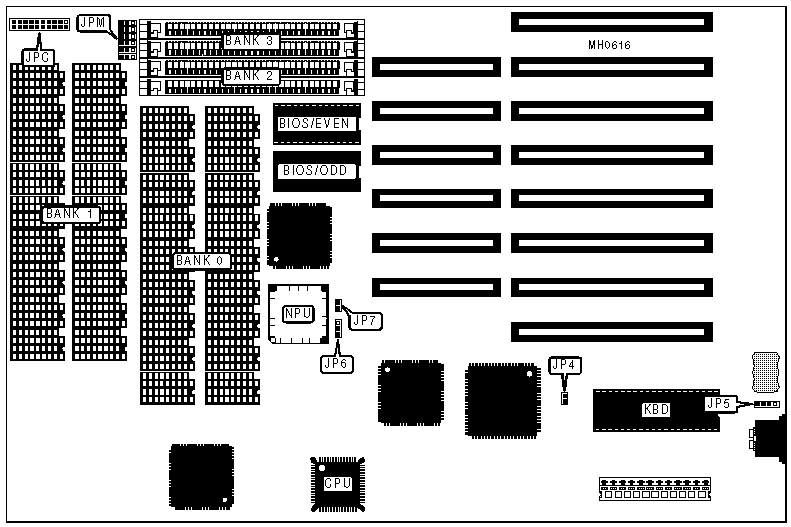 DRAM type select DIP and SIMM | JPM | pins 2 & 3 closed | |