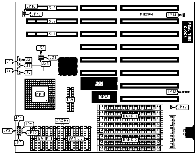 Turbo LED | J3 | 32-bit VESA local bus slots | SL1 - SL3 |