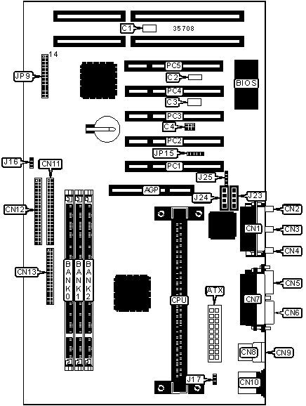 PS/2 mouse port | CN10 | 32-bit PCI slots | PC1 - PC5 |
