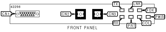 AUI transceiver via DB-15 | CN1 | Fiber optic connector (ST) | CN3 |