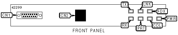 AUI transceiver via DB-15 | CN1 | RJ-45 UTP connector | CN2 |