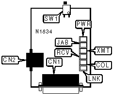 AUI via DB-15 port | CN1 | Unshielded twisted pair connector | CN2 |