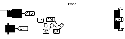 AUI transceiver via DB-15 | CN1 | RJ-45 UTP connector | CN3 |