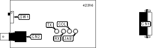 AUI transceiver via DB-15 | CN1 | RG-58 A/U 50ohm coaxial | CN2 |