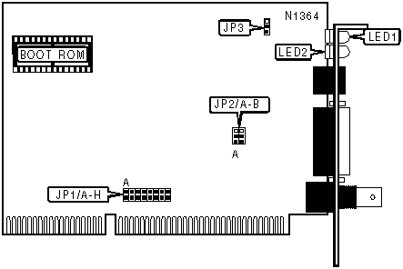 LED2 | Green | Off | 10Base-T network connection is broken or JP2/B is disabled |