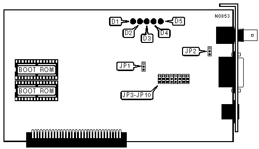 AUI transceiver via DB-15 port | Pins 2 & 3 closed | Pins 2 & 3 closed | Pins 2 & 3 closed |