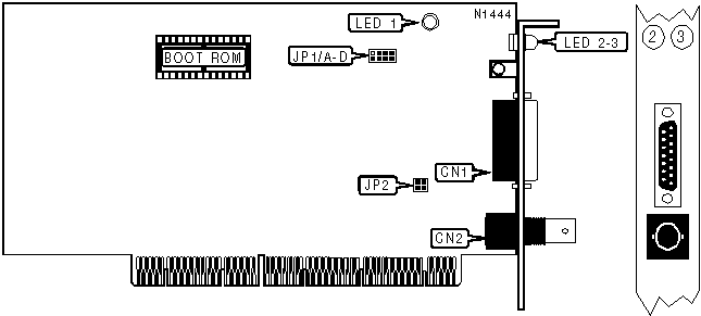 AUI/10BASE5 | CN1 | RG-58A/U 50ohm coaxial/10BASE2 | CN2 |