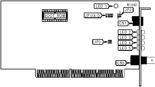 RJ-45/10BASE-T | CN1 | RG-58A/U 50ohm coaxial/10BASE2 | CN2 |