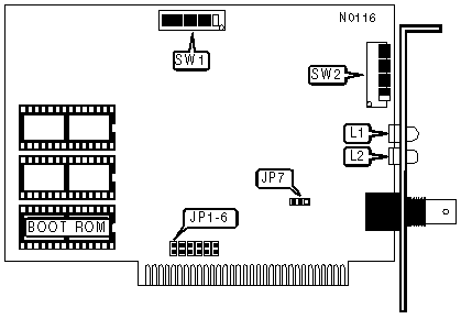 Note: If LEDs L1 & L2 continue to blink for an extended amount of time, this indicates a network problem such as a defective card, a broken network connection, or a hub failure. | |||