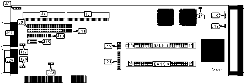 50-pin SCSI channel 2 connector - internal | J11 | 68-pin SCSI channel 1 connector - external | J27 |