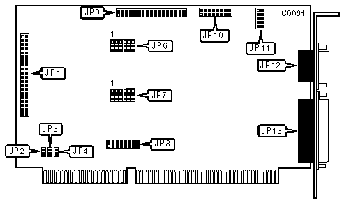 | » | Hard drive port address is 1F0-1F7h, 3F6-3F7h | JP7/jumper 1 | pins 1 & 2 closed |