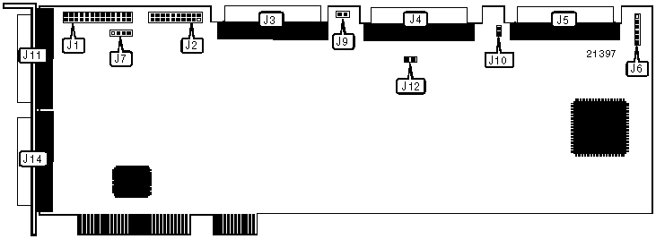 68-pin SCSI connector - channel 1 internal | J4 | 68-pin SCSI connector - channel 1 external | J14 |