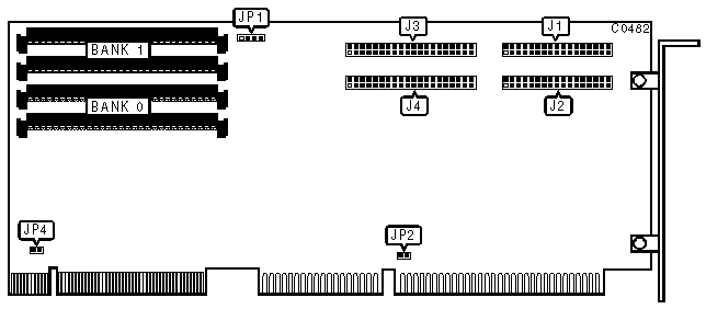 At least one pair SIMM of memory modules (256KB, 1MB, or 4MB) of the same size must be installed in Bank 0 in order for the controller to function. |
