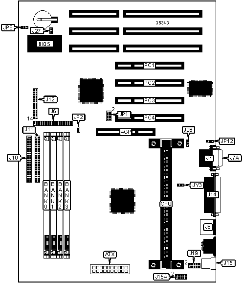 AGP slot | AGP | VCC ground | J12/pins 14 & 15 |