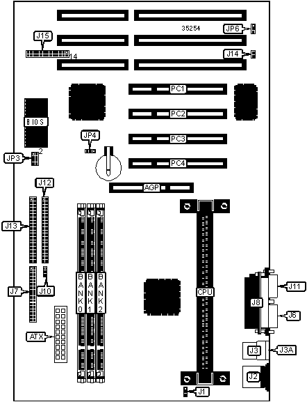 AGP slot | AGP | Speaker | J15/pins 1 4 |